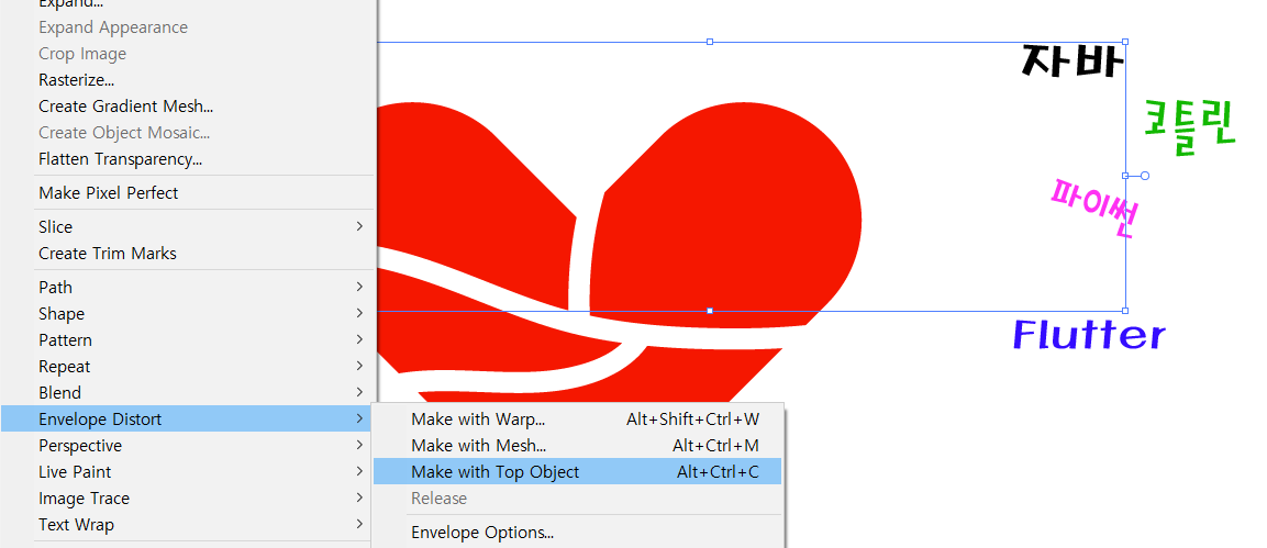 다시 Envelop Distort > Make with Top object (Alt + Ctrl + C)