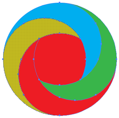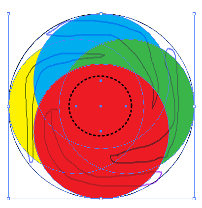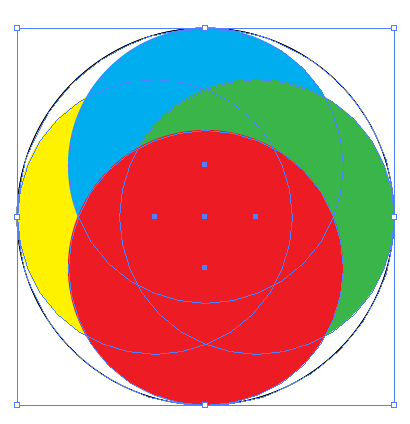 1. 커다란 원안에 4개의 원을 넣는다.