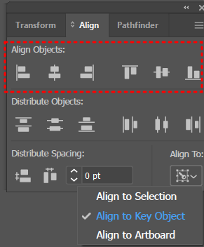Align To를 보면 Key Object로 활성화 된 것을 볼 수 있다.