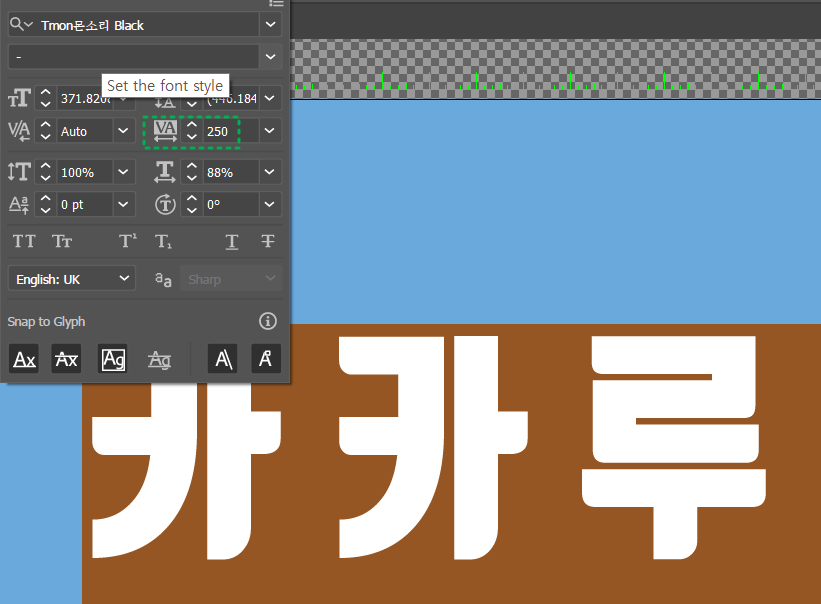 4. 글자 '카' 에서 거리가 너무 가깝기 때문에 조금 사이에 공간을 준다.