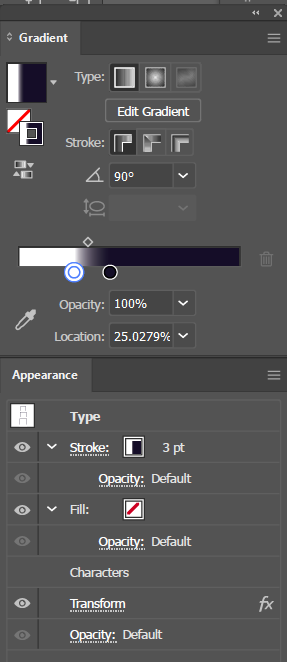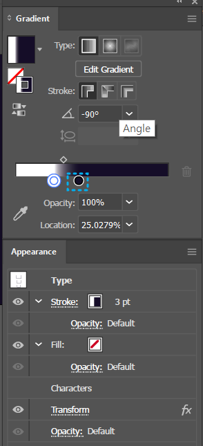 2. Appearance > Add New Stroke > Gradient 를 아래와 같이 설정