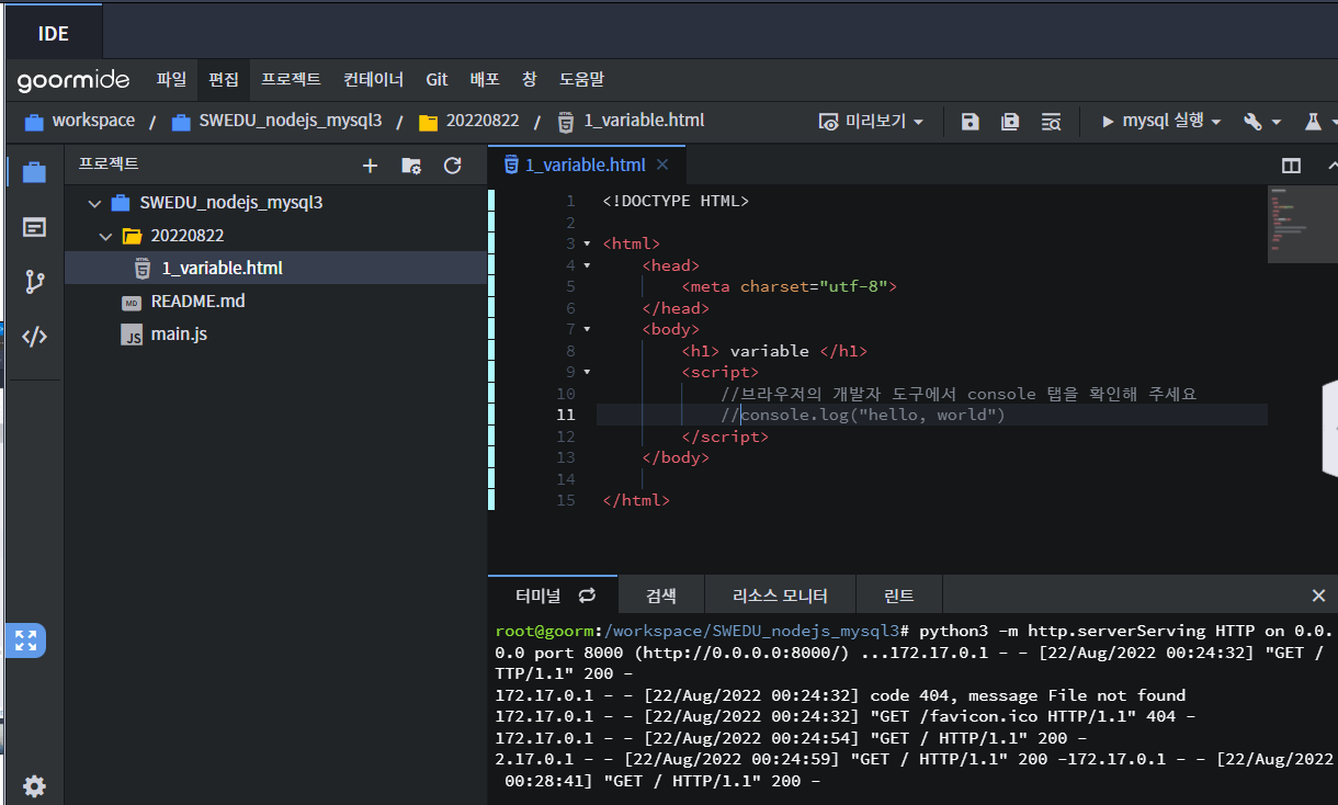 1. 웹 서버 구동위한 준비 - (구름 IDE)