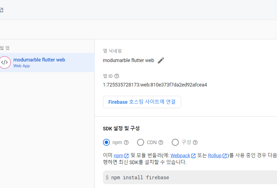 Project Console: https://console.firebase.google.com/project/flutter-modumarble/overview