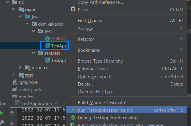 간단한 Controller 클래스 하나 추가하여 잘 동작하는지 확인합니다.