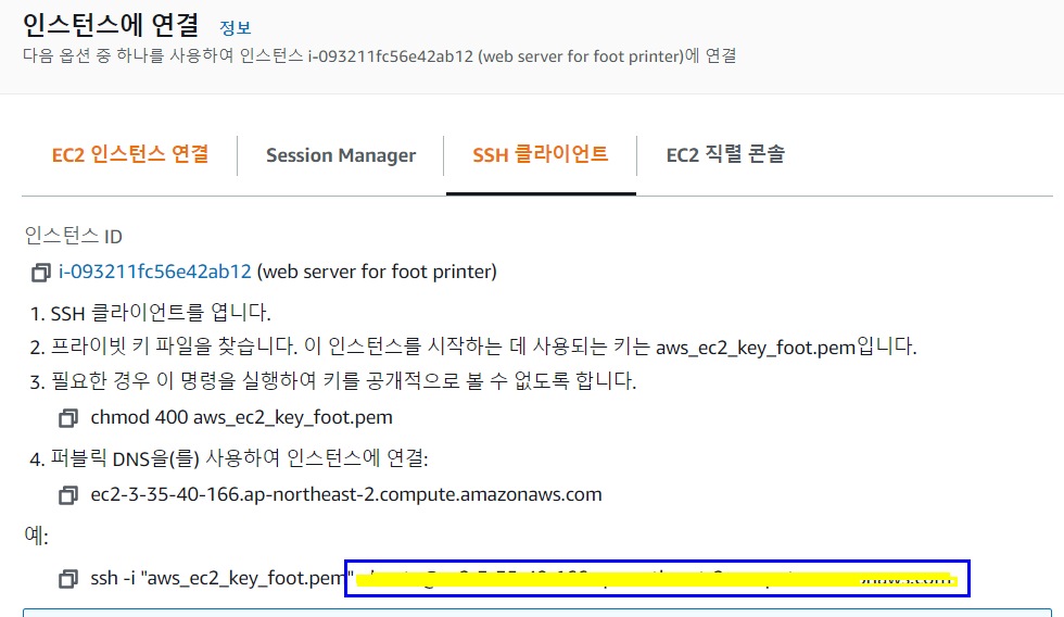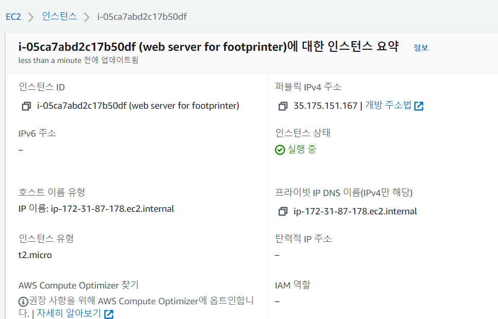 > 인스턴스 생성이 다 되었으면 IP와 도메인이 할당된 것 확인 가능
