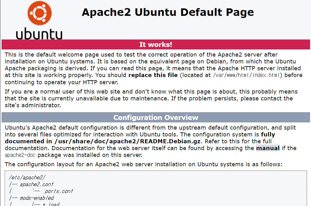 아파치 서버가 실행이 되면 위에서 설정한 탄력적 IP로 접속시 아래와 같이 Apache main page가 load 됩니다.