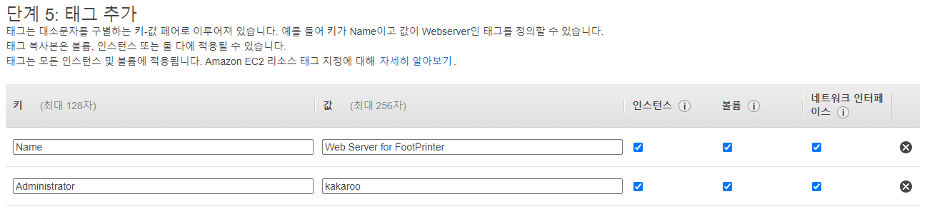 > Name tag를 등록 (인스턴스를 나타낼수 있는 값으로 등록)