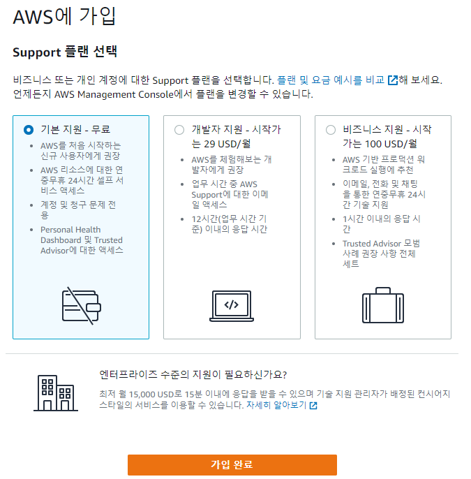 http://aws.amazon.com/ko/ 에서 무료계정 생성 (준비물: Master 혹은 Visa card)