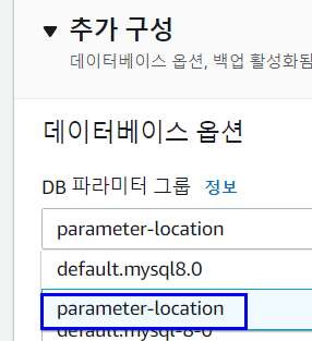 3. 생성된 파라미터 그룹을 데이터베이스에 연결