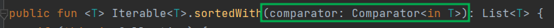 compareBy 메소드는 Comparator를 생성하고, sortedWith 함수는 Comparator 를 인자로 받는다.