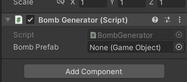 3.3 Empty object에 Generator 스크립트 적용한뒤, BombGenerator 로 이름 변경
