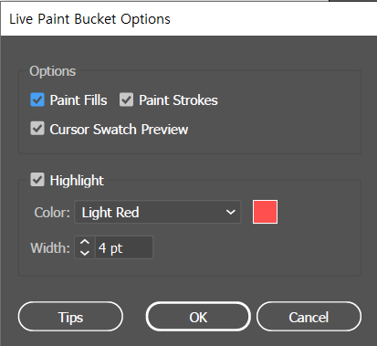 4. Live Paint Bucket Options 설정 - 아이콘 더블클릭