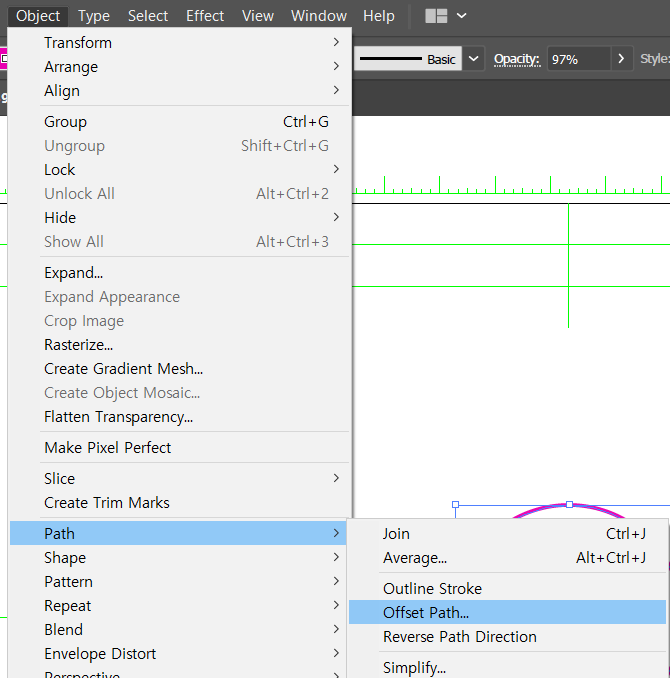 > object를 선택한 다음 > object > path > offset path