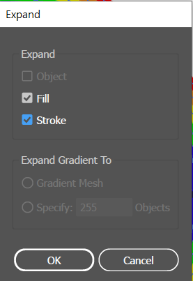 pathfinder는 면으로 된 object를 나눌 수 있기 때문에 위에서 그린 무지개 object 만 선택해서 면으로 변경한다.