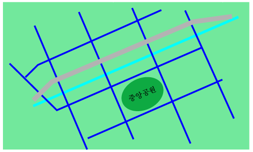 1. 따라 그릴 지도를 캡쳐해서 배경으로 놓고 따라 큰 길만 그린다.