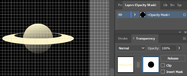 원이 mask가 되려면 앞으로 나와야 한다. clip 을 check 했다가 다시 uncheck 해보자