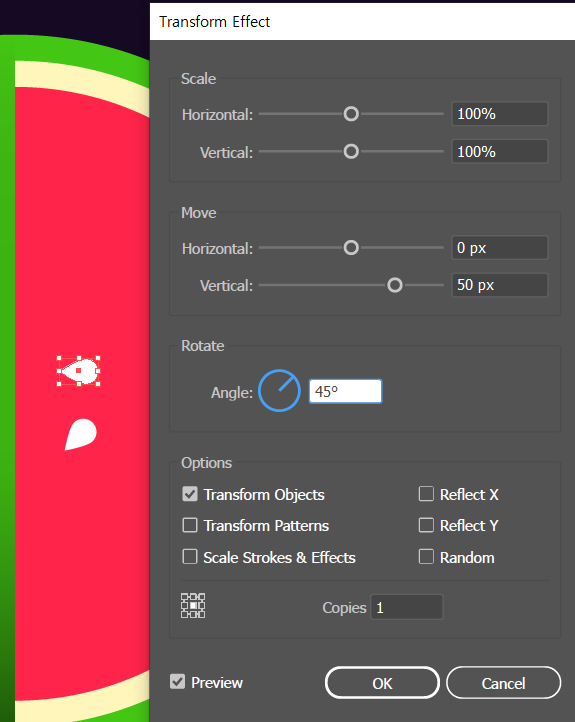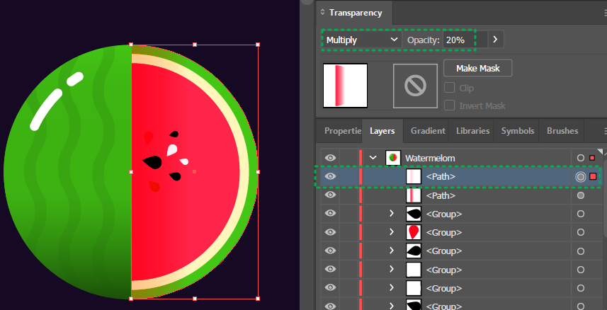줄무늬 선택 > Transparency > 더블클릭