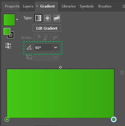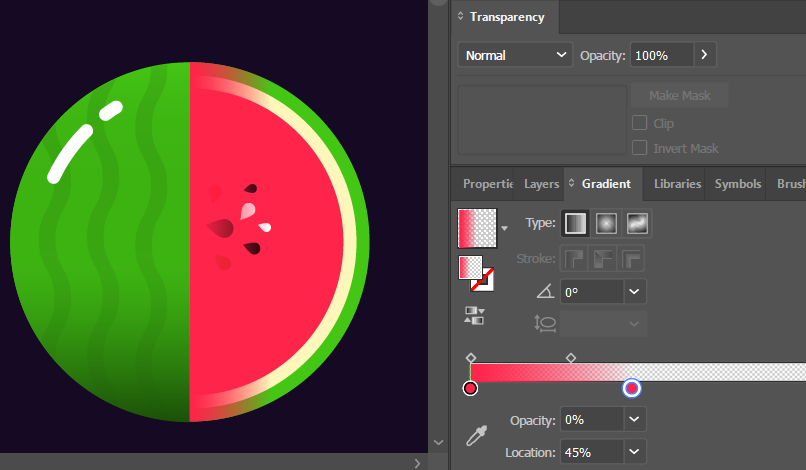 오른쪽 반원을 맨안쪽 원 색깔로 Gradient 처리한 뒤, 우측 Gradient 값을 아래와 같이 변경한다.