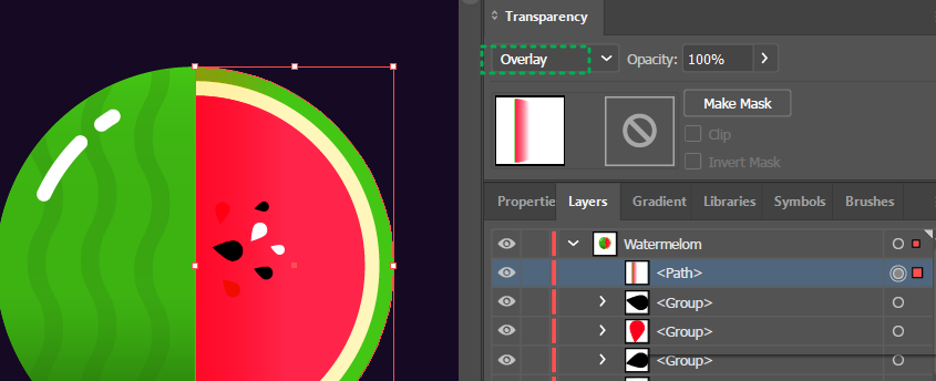 반원의 Transparency 를 overlay로 변경